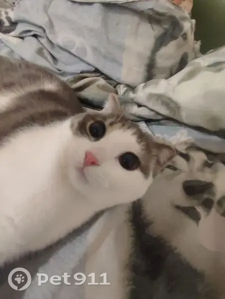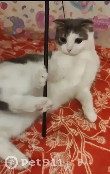 Белая с серыми пятнами , Боится людей Выпрыгнула из окна первого этажа
