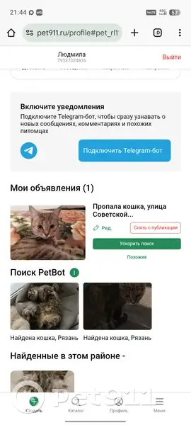 Каждый час поисковый робот Pet911 на основе искусственного интеллекта сканирует и распознаёт тысячи фото со всех тематических сайтов и социальных сетей для того, чтобы найти питомцев, похожих на вашего.