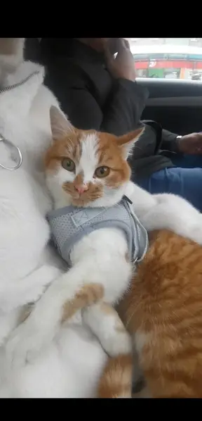 Рыжий с белым, на мордочке около носа рыжее пятно. Хвост полосатый, лапы и пузико белые. Пропал выбежав за дверь, когда уходили гости.