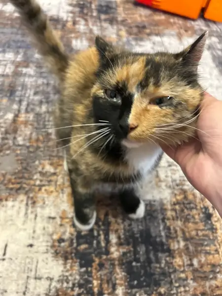 рыже-черный окрас. Белый воротник и лапки. На кличку не приходит, но реагирует. Забрали с улицы в ~4 месяца. Сейчас ей 1.5. Ушла в ночь 26/27 марта в окно. Любит мясо сырое и легкое баранье