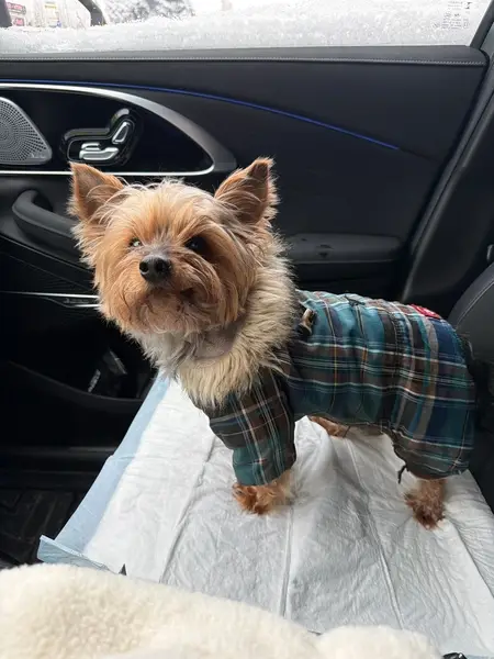 Пропала собака, кличка Шайни на территории спа санатория «Солотча». Вышли 29. 11 около 16: 30 на прогулку, через 15-20 минут убежала. Была одета так, как на фото. Вознаграждение гарантирую! #пропаласобака#солотча#йорк#поисксобак Была полностью одета ( шапка, костюм, ботиночки). Мелкого телосложения, не лаит ( подрезаны голосовые связки).