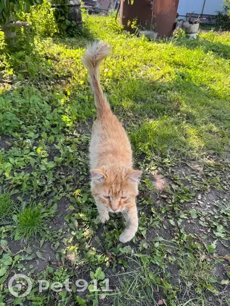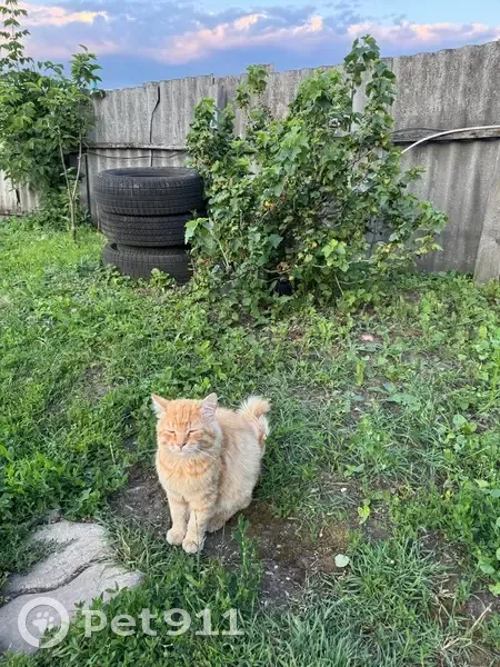 Рыжий ласковый кот, не кастрирован, видно по поведению, что домашний. Прибился на дачу в конце весны, искали хозяев в ближайшем районе, никто не откликнулся.