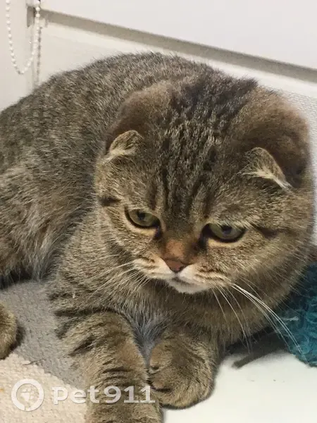 Пятнистая, хвостик и лапки в полосочку, цвет песочный - бежевый. Шотландка, ушки прижаты, маленькая , возраст примерно год. Сидела на остановке - лагерь « Звёздный» на трассе Рязань -Спасск Рязанский. 11.05 2025 . Подобрали вечером после 20:00. Была сильно напугана. Сейчас адаптирована, знает туалет на 5, ест корм, очень ласковая и игривая. Кошечка гуляет, поэтому наверно потерялась. Пожалуйста помогите найти хозяина.