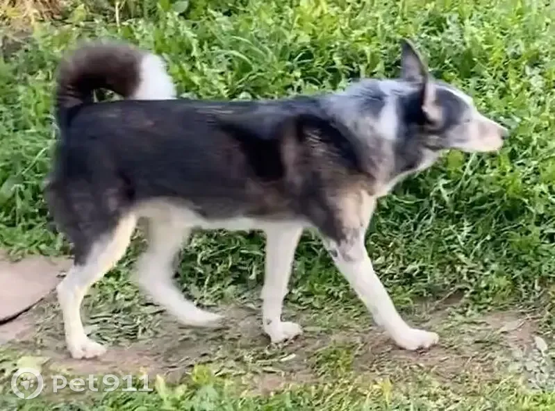 15лет. Окрас черный с сединой, живот и лапы белые. Хвост - черный, баранкой , кончик белый. Морда +седая, нос черный. На лбу белая полоска. Уши стоят, глуховат. Спокойный. Без ошейника был. Потерялся у. Оки в Вакино. Пошел в сторону Федякино.