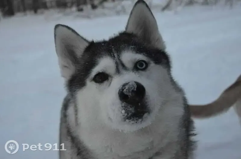 У Юстиши глаза разного цвета (карий и голубой), ошейника на собаке нет. Убежала во время прогулки по лесу.