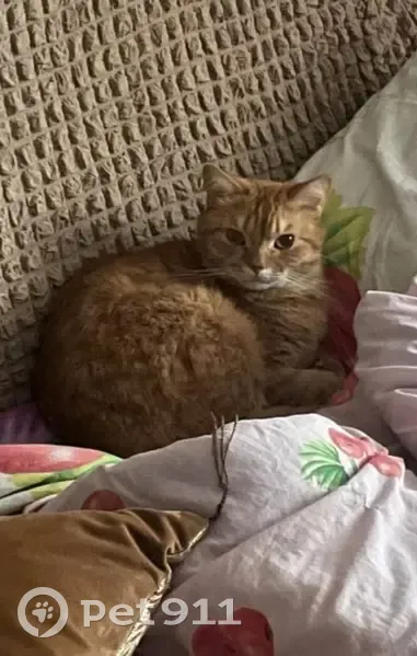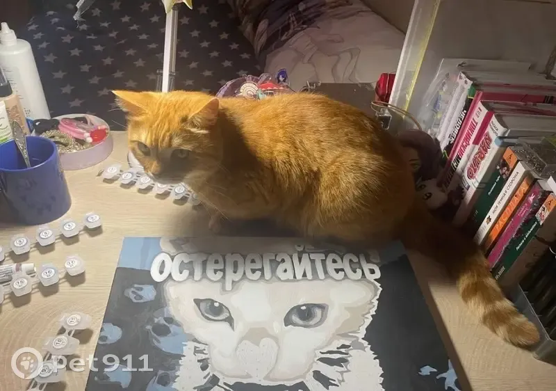 Очень домашний и пугливый кот. Откликается на кличку Пуша. На улице никогда не был. Упитанный. Рыжий окрас с белыми полосками. Коричневые глаза. Выбежал в подъезд