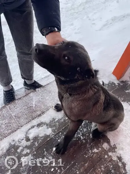 Собака мальчик, похожа на метиса Стаффорда и дворняги. Уши купированные. С ошейником в виде цепочки. Пёс совсем молодой, ещё щенок по сути, играется бесится. Очень контактный и дружелюбный, видно что хозяйский, чистый. Находится на выставке строительной компании Белый Дом