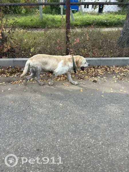 Кобель. Гуляет в районе магазина Пятерочка п. Садовый МЮД. Был замечен в 15:00. Прихрамывает на заднюю лапу, вся морда в пене, видимо носился по полям, вся задняя часть в грязи. Хозяин найдись!!!