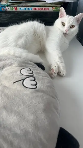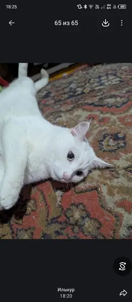 Белый. Взрослый, очень крупный кот, кастрирован, привит. Найден живущим, как в сказке Пушкина, на дереве, только не на дубе, а на березке, так он спасался от собак и злых людей, спускался только поесть и падал во сне с ветки( Кот был очень болен, его съедали блохи, власоеды, подкожные клещи, на теле не было путем шерсти, весь в расчесах. Пришлось его лечить на месте, а потом обманом засунуть в переноску и домой. Не смотря на то, что кот очень умный, доверять учился долго, а после того как его вернули с нового дома все пришлось начинать сначала. На фоне тоски и стресса проснулось кожное заболевание, потом пришлось на системах вытаскивать его с того света из за панкреатита, теперь все стабилизировалось. Ищем дом необычно серьезному коту, с надеждой, что это навсегда.