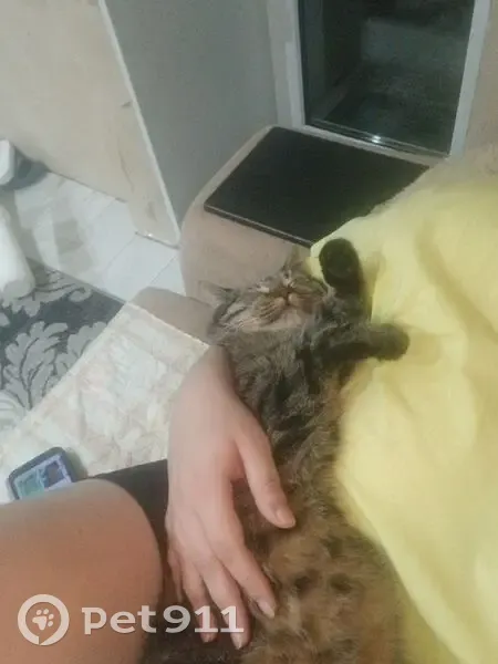 Упитанная очень,похоже на беременную,но на самом деле она стерелизованная,просто любит покушать.Ходила на улицу гулять постоянно,домой возвращалась либо с соседями,либо сами забирали.