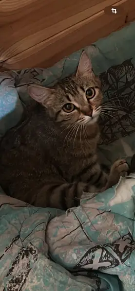 Кошка обычного окраса степного кота, выглядит потерянной, пол не определил, ласкается, нервно мяукает, найдена на Карла Маркса 364, между 3 и 4 подъездом, в кустах