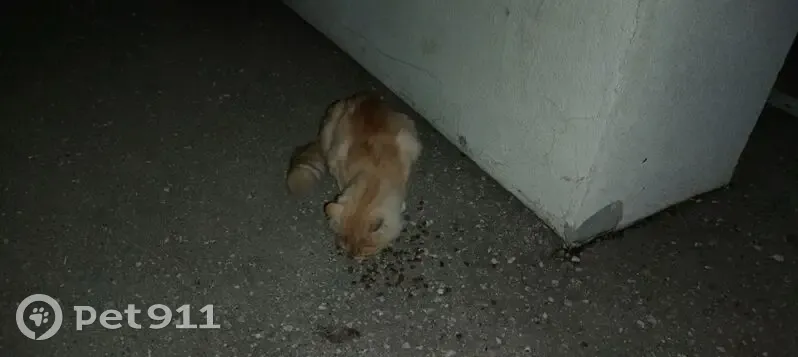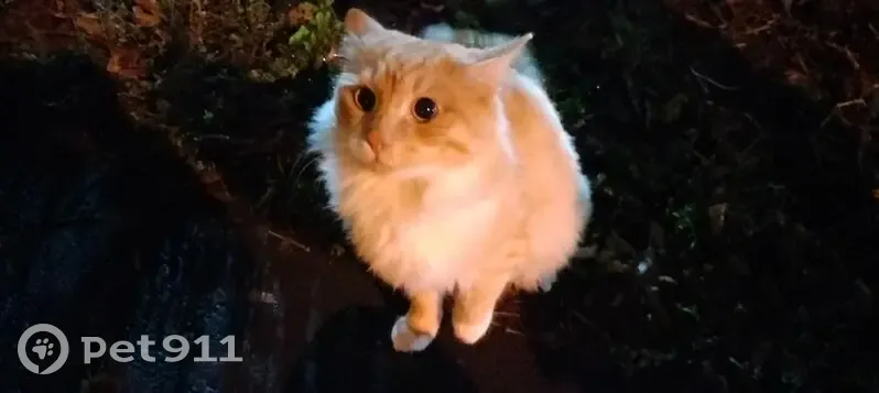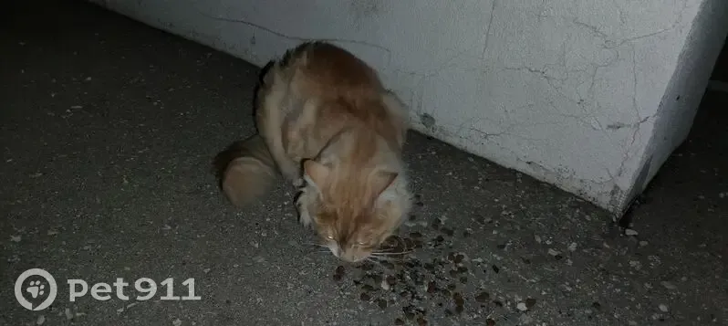 По улице ходит рыжий кот, явно домашний, охотно идет к людям