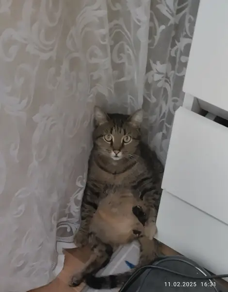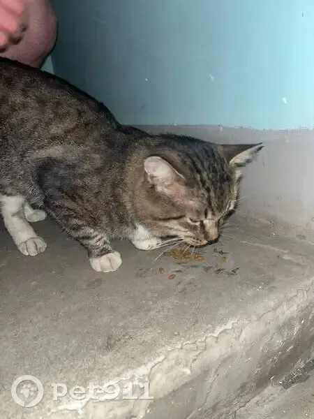 Котик молодой, очень ласковый и голодный. Явно домашний, т. К. Чистый.