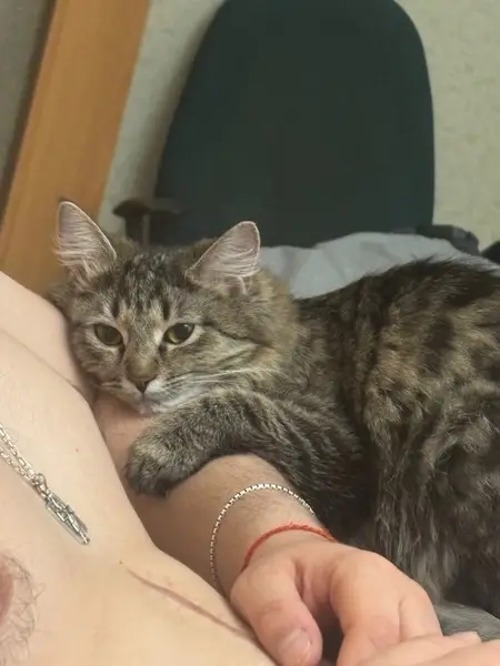 Нашли на складе , сильно мяукал, был очень напуган. Подобрали , пока живет при складе в офисе. Видно, что домашний, на контакт пошел легко, ласковый и очень умный . Ночью ходит в лоток, днем выходит на улицу делать дела ). Ловит мышей. На вид молодой, 1 г- 1,5 года максимум . Вислоухий , шерсть не линяет , блестит. Здоровый котик. Ему необходимо присутствие человека рядом, он прям по пятам готов ходить и наблюдать). Наверняка его кто-то ищет. Повторюсь, кот очень умный, понимает все с первого раза. Показали лоток- ходит в него, постелили ему место- только там и спит, знает что и как сразу, от офиса далеко не отходит, всегда в зоне людей.