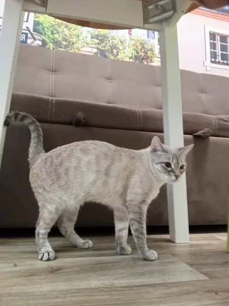 Похожа на тайскую породу, голубые глаза, ласковая и добрая