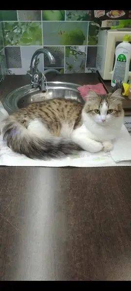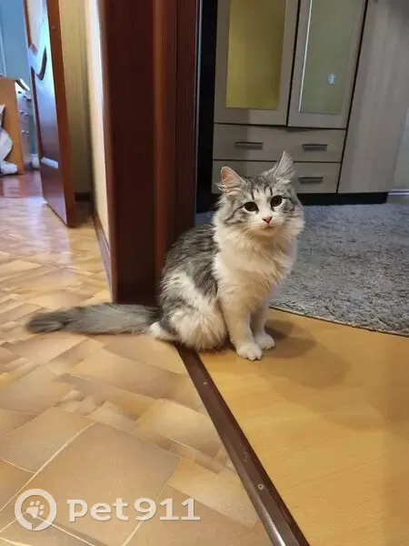 Ласковая, видно что домашняя была , знает туалет, шерстка ухоженная. Окрас бело -серый . Плакала на дереве, загнали собаки наверное, спасли с помощью прохожих
