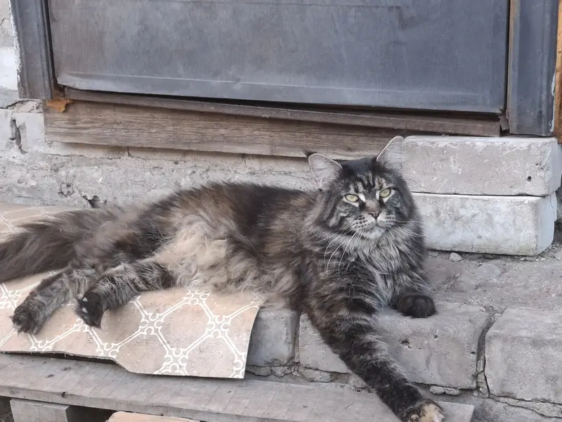Кот кастрированый. Знает горшок, любит спать на кровати, очень скучает. Крупный, пушистый.