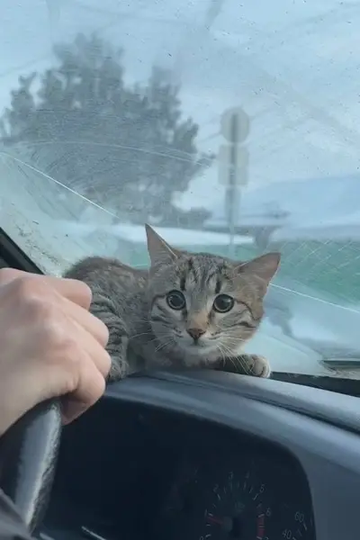 Малышка плакала часа 2 на дереве, за домом Чернореченская 18. Окрас полосато-серый, черные пяточки на всех лапках. Кошка приучена к месту и очень активная и ласкавая. Ветеринар сказал, что ей около 4-х месяцев, она здорова и упитана, скорее всего домашняя. PS взрослый трусливый кот очень её боится) а она его нет))