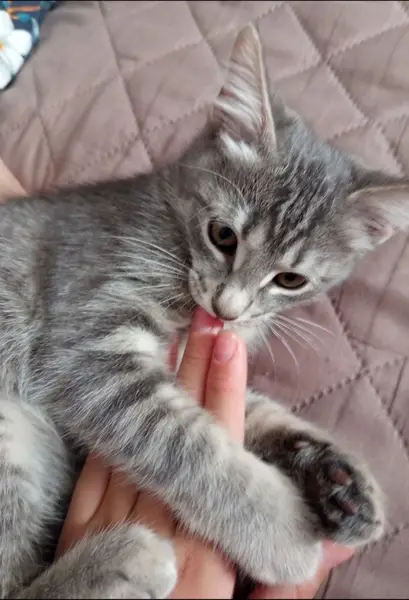 Возраст примерно 3 месяца, в зеленом ошейнике. Ищу прежних или новых хозчев. Девочка очень ласковая, любит ручки и мурчит как трактор