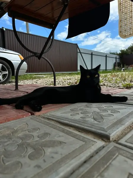 Породу не знаю Мальчик Полностью черная шерсть Глаза желто - оранжевые Небольшой стройный кот Здоров, аппетит хороший, очень ласковый Громко мяукал примерно с 9 часов утра, когда подошла к нему, котик дрожал и очень брался улицы, с удовольствием съел пакет корма, ластился и просился на ручки Явно боится улицы, с места не сходит