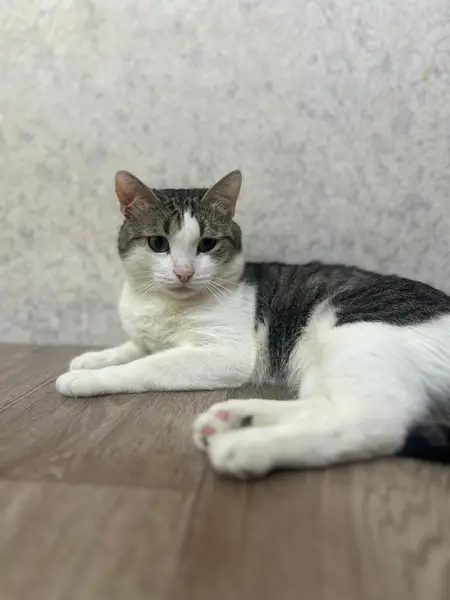 Кот - мальчик, стерилизованный, с синим ошейником от блох. Примерно 3-4 года ему. Окрас - бело-серый в полоску, с пятнами на спине необычной формы. Бегал около машин по адресу: Первомайская 29. Съездила в ветеринарную клинику, сказали что у него блох нет, ушки чистые, в меру упитанный (хорошо кормили), ласковый котик. Телефон для связи: 8(922)411-03-47