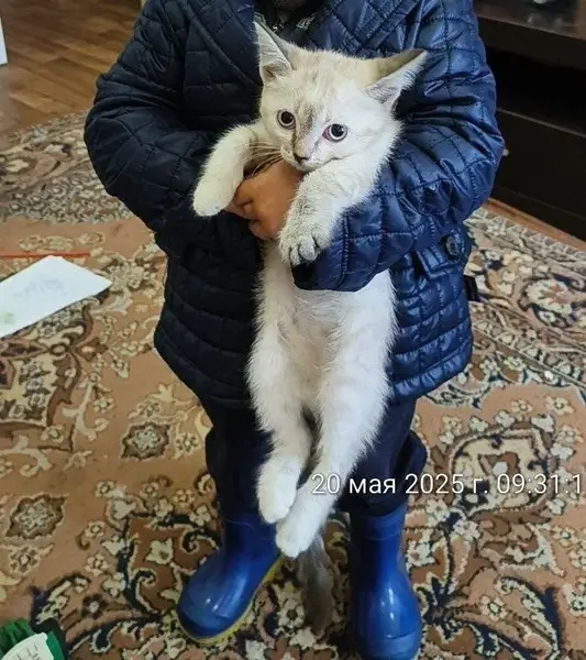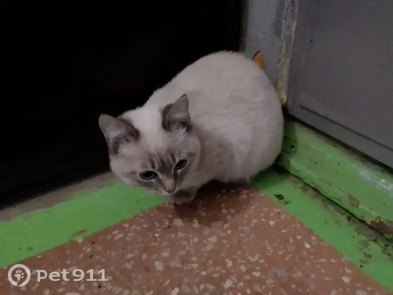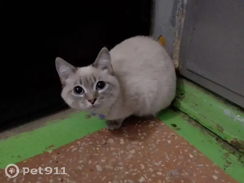 Сегодня с утра в подъезде появилась кошка/кот! Пол не знаю. Выглядит очень молодой. На шее ожерелье или браслет с круглыми бусинами белого и голубого цвета. Явно домашняя. Выглядит растеряно. Из соседей пока никто не отозвался. Окрас светло-серый, почти белый. Мордочка, уши, лапы темно-серые. Короткошерстная. Г.Самара. Ориентировочно пересечение Партизанской/Промышленности