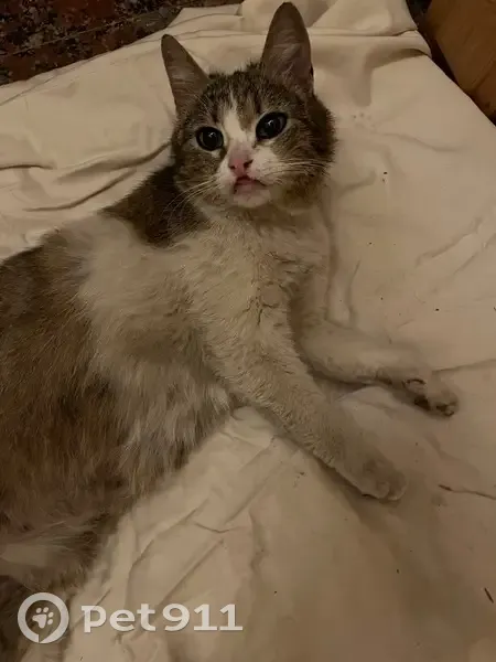 Взрослая, беременная кошечка, с заячьей губой, очень ласковая, максимально контактная, явно домашняя или была ей, ходит в лоток, но очень грязная с колтунами на боку