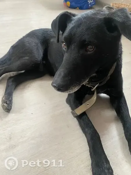 Молодой кабель черного окраса, седина в районе пасти и на лапах. Собака в ошейнике, была растеряна. Дома по его «поведению» поняли что скорее всего убежал за текущей сукой. В багажник запрыгнул моментально, ехал не переживалал ,привычно как будто для него.