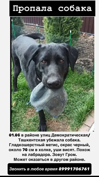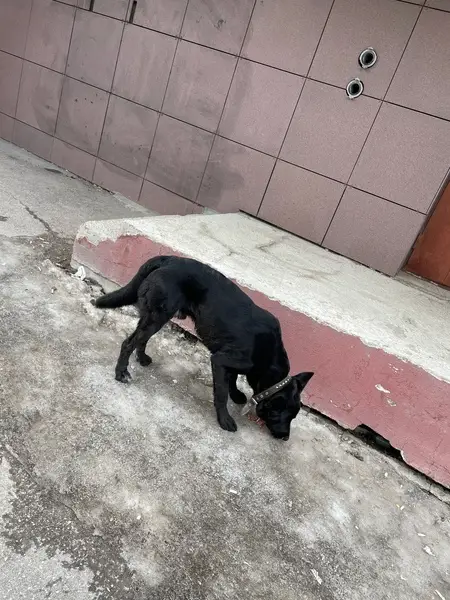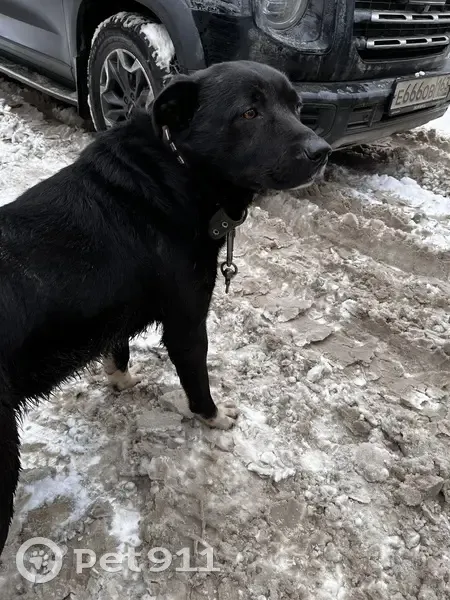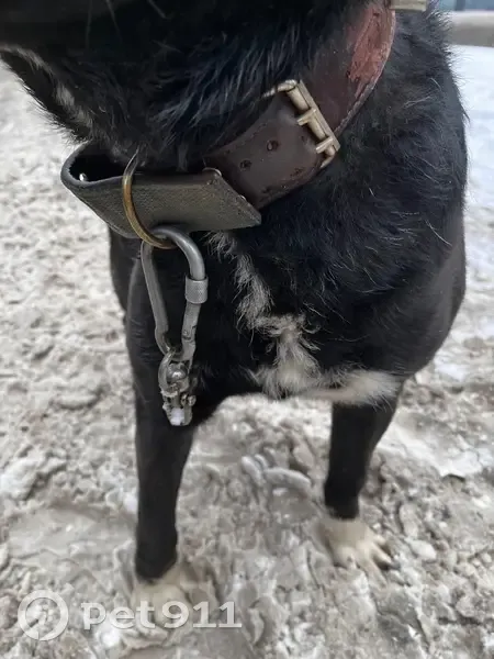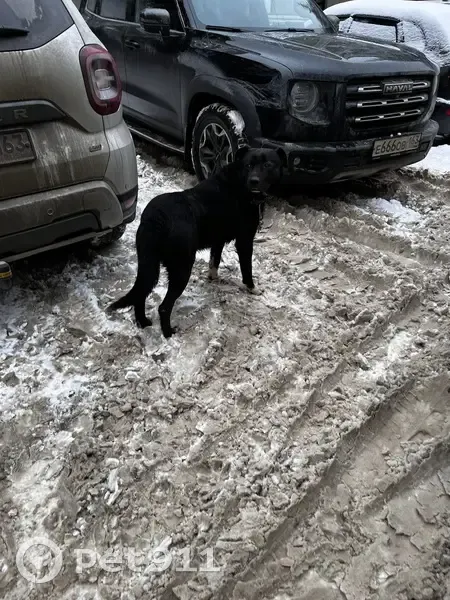 Найдена собака 16 февраля в 9:00 около поликлиники на металлурге. Есть ошейник, собака дезориентирована, добрая, контактная, ко всем подходит. Явно потерялась, выходит прямо на дорогу, словно ищет кого-то. Окрас чёрный, на груди белый воротничок, на лапах белые носочки.