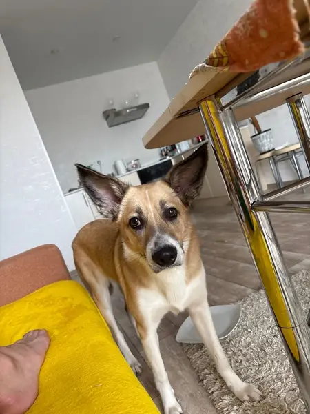 Собака с белым и коричневым окрасом на ул. Маяковского, 97