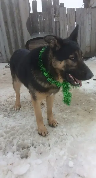 Черно рыжий овчарка , белые зубы , железный ошейник