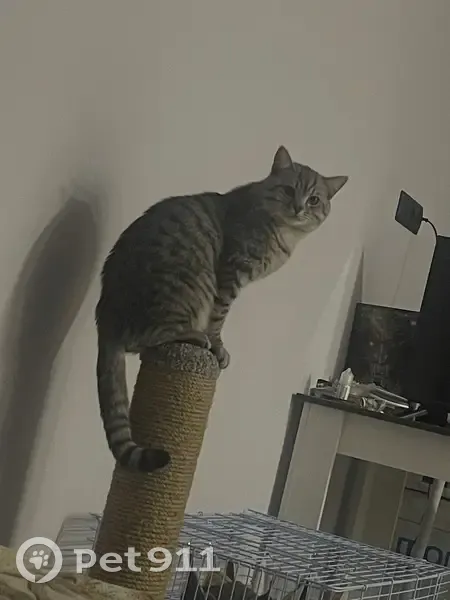 Кот Шотландский серый, полосатый окрас,шугливый, боится людей, пропал 20 июня не понятно каким образом,тк на улицу он никогда не выходил,а последний раз видела его на кровати,возможно кто то забрал в подъезде…