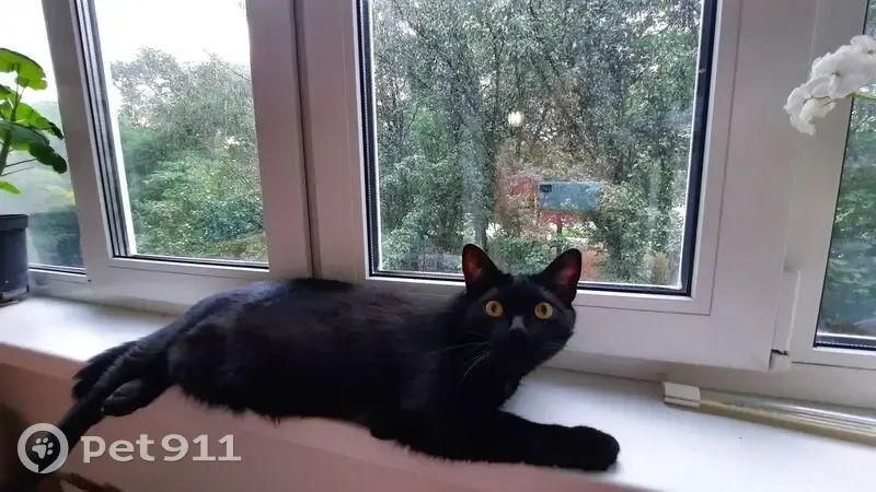 Окрас черный вороной, глаза желтая медь, на груди есть очень маленькое белое пятнышко. Очень пугливый. На улице не бывал. Упал с балкона в ночь с 31.08.25г на 1 сентября. Возраст 5 лет.