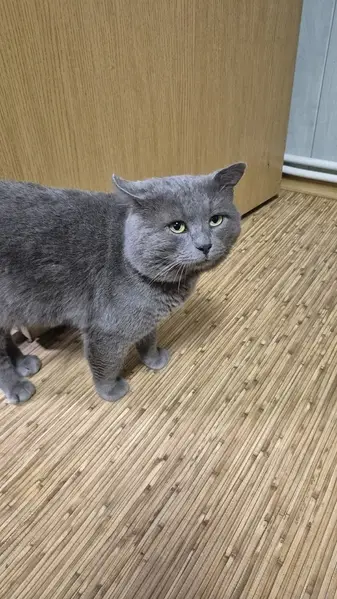 Кот домашний, на улицу не ходит. Думаем выбежал пока закрывали дверь. Окрас темно серый , вислоухий, глаза желтые. Очень трусливый на разные звуки, но тактильный.