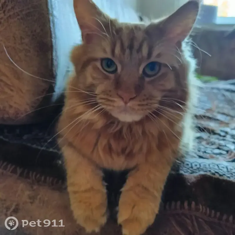 Окрас красный мраморный d22, порода мейн кун, возможно выпрыгнул в открытое окно (частный дом) или выбежал из дома, Макс никогда не был на улице, очень трусливый и пугливый