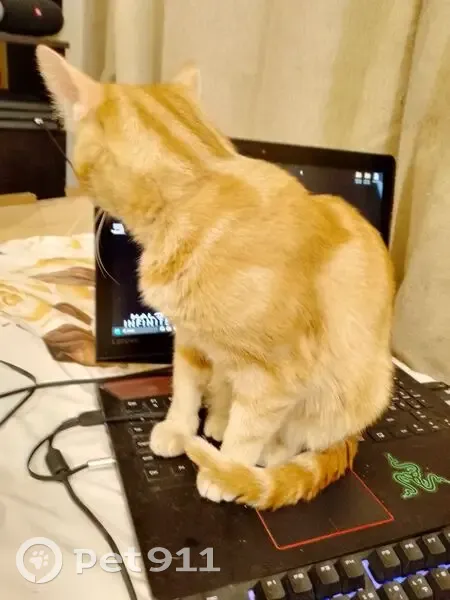 Любит сбегать на улицу, когда открываешь дверь. Любит еду, терпит когда его купают, не всегда отзывается на имя, только когда зовут кушать или гладить. Рыжий кот. Есть небольшая шишка на голове, брали его с улицы когда она уже была. Угрозы коту не представляет