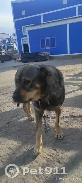 Рекс живет на территории базы ООО ПК "Продмаш", обычно на цепи, отпускаем погулять вечером. В субботу вечером 18.10.2025 ушел и не вернулся. На нем кожаный ошейник серо-черного цвета.