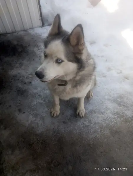 Здравствуйте, пропала собака, порода хаски, редкого окраса Соболиный! Глаза голубые. Убежал со двора 23.11.23 г.