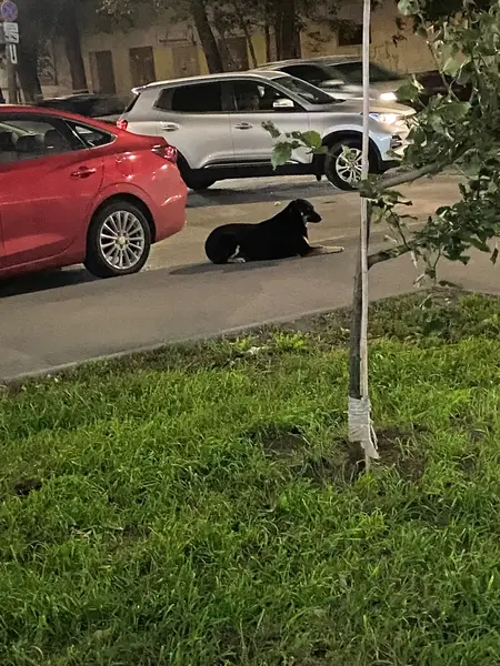 Собака девочка, черно белого окраса, больше чёрного, на мордочке белое пятно Были около подъезда и кто то взорвал петарду, убежала испугавшись, на шее висит чёрная верёвка а на верёвке кулон в виде золотой косточки, ошейника другого не было на ней, пугливая, боится других людей, если к ней кто то подходит то она сильно лает