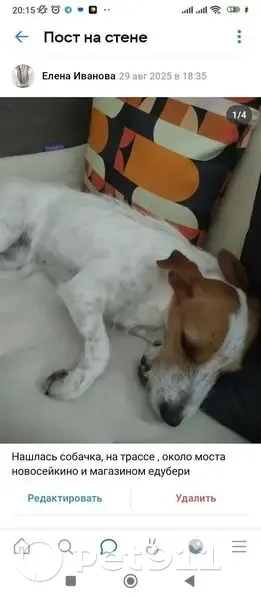 Джек Рассел, девочка, бегала на трассе недалеко от магазина едубери, в районе Новосемейкино очень умная, знает машину,