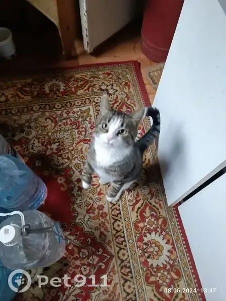 Окрас камышовый/шпротный, белый кончик хвоста, белые задние лапы, белые тапочки на передних лапах, белая стрелка на лбу, белые щёки, белый нос. Нет одного верхнего клыка. Пропала на дачном массиве Ермаково в районе улиц Северная 13, 14, 15. Кошка самостоятельная, общительная, могла пристроиться к кому-то жить. Кошка в городских/домашних условиях ведет себя очень специфически. Если кто-то забрал в город, верните пожалуйста!