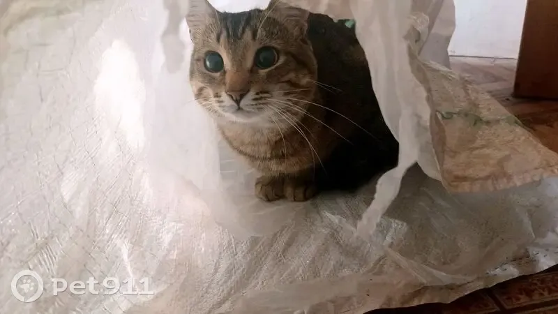 Пестрый кот. Два года. Как большинство котов, на ласку идёт чаще всего, когда голоден или просто сам хочет ласки, разборчив в еде. Выскочил за дверь, когда заходили домой с пакетами после магазина. Был вечер. Кота в потемках не нашли. На кличку свою отвлекаться не стал. Он не особый любитель улицы. Выходил, но очень редко, почти всегда со мной.