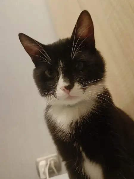 Сегодня в парадном найдена кошка.Черная с белой грудкой.Домашняя,упитанная,ласковая.