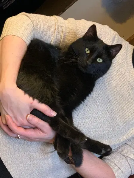 Найден кот (или кошка). Обнаружен 24.05. 2025 на улице Константина Заслонова. Черный с желтыми глазами, в красном ошейнике. Предположительно выпал из окна. 89111628595