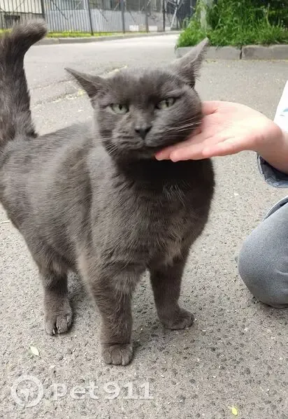 Найдена серый кот/кошка, не смогли определить. Полностью серый окрас, зеленые глаза, присутствуют белые волоски, больше всего немного под шеей. Сидела на парковке и мяукала. Несколько дней сидела на одной парковке почти на одном месте. Взяли домой, так как видно, что домашняя