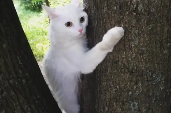 Ласковый котик, видно, что домашний. Ночевал на дереве под дождем. Хозяин, найдись