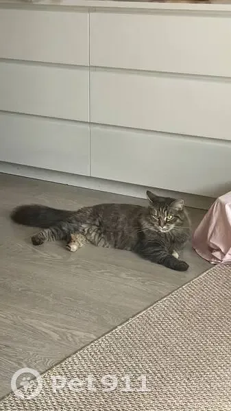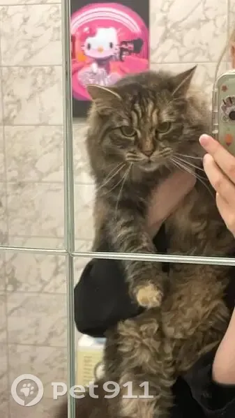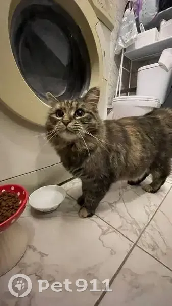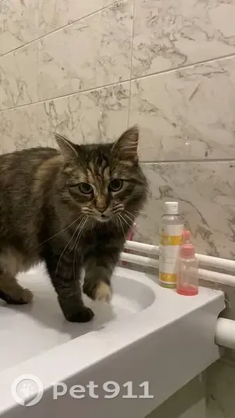 Найдена кошечка ночью с четверга на пятницу (24-25 июля), сидела около приоткрытого на проветривание окошка (возможно вылезла в щель ночью). Кошка домашняя, ласковая, сама увязалась за мной домой. Ухоженная, на вид совершенно здоровая, шерсть не успела даже уличной пылью покрыться. Дома чувствует себя спокойно, немного пугливая, но ластится. Очень недовольна, когда берут на руки. Разговорчивая, тихо но часто мякает когда с ней разговаривают. На другого кота не реагирует, не дерется. На передержке в квартире ведет себя уверенно, везде ползает, спит вальяжно на полу Глаза зеленые, окрас черепаший, пушистая, хвостик пышный. На левой передней и задней лапки пальчики белые, на правой - черные.