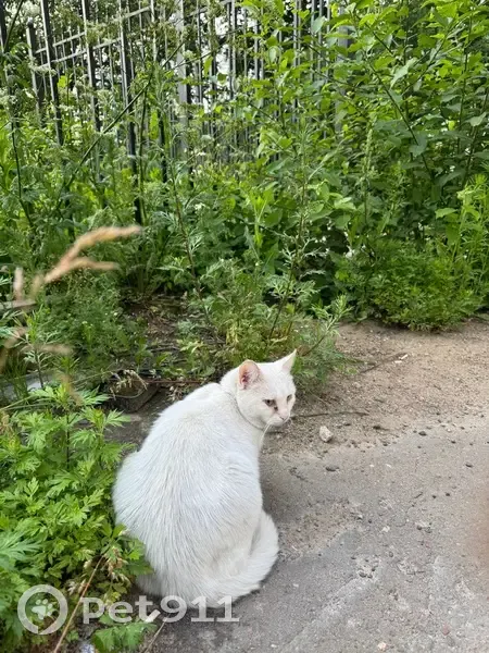 Белая кошка с серым пятнышком на голове в ошейнике ( серый цвет), ласковая, похожа на метиса с британцем, приходит поесть в место кормления. Давно уже приходит. Чья потеряшка?