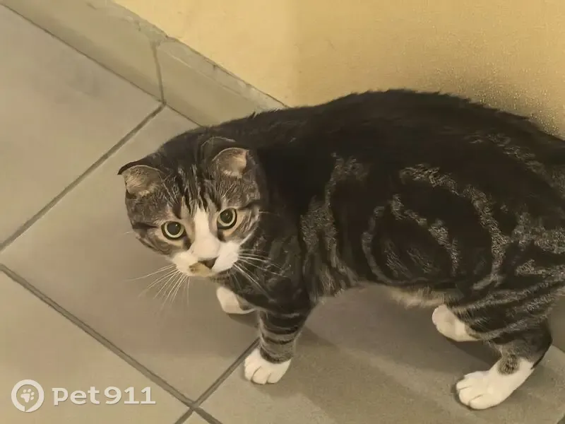 Кошка (кот) найдена в жилом доме на этаже, утром 30.07.25, к концу дня осталась там же, хозяев из жильцов дома не найдено, возможно попала в дом через лестницу или лифт из другого дома Приплюснутая немного мордочка, окрас как на фото