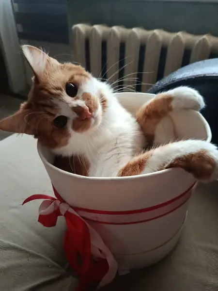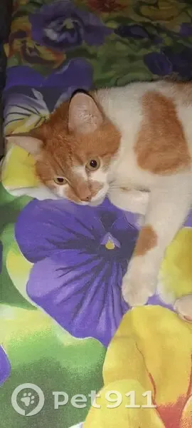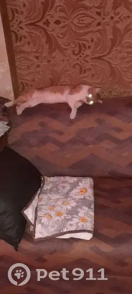 Найден кот, окрас рыжий с белым, гладкошерстный. На вид год или два. Появился во дворе по улице Зверинская, дом 17 Б 15 июня 2025 года. Видно, что домашний. Людей не боится. Просится в двери.